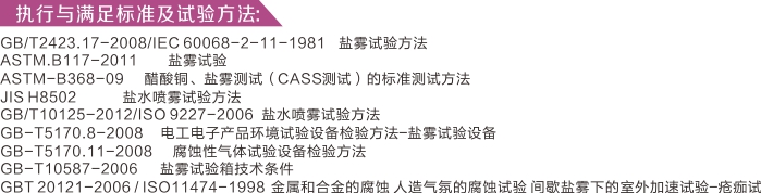 本設備主要于檢測金屬及其合金、金屬覆蓋層、有機覆蓋層、陽極氧化膜和轉化膜的不連續性,如孔隙或其他缺陷。此款鹽霧機試驗室加熱采用熱輻射加熱方式保持測試空間所需溫度,從而保證測試的精度。This equipment is mainly used to detect the discontinuity of metals and their alloys, metal coatings, organic coatings, anodic oxide coatings and conversion coatings, such as pore or other defects. Laboratory heating of this type uses thermal radiation heating to maintain the required temperature of the test space, thus ensuring the accuracy of the test.